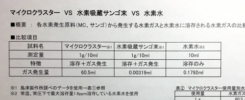その水素を大量に発生させるマイクロクラスターを含んだ