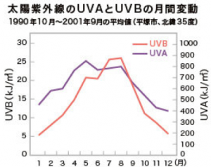 下のグラフの様にUVAは冬でも多く降り注いでおり、